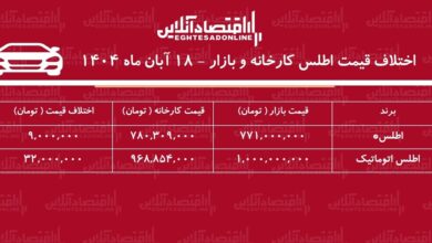| برند | قیمت بازار آزاد (تومان) | قیمت کارخانه (تومان) | اختلاف قیمت (تومان) |